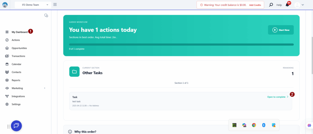 - View your Priority Actions. This calls out the most important actions assigned to you that are either due today or overdue