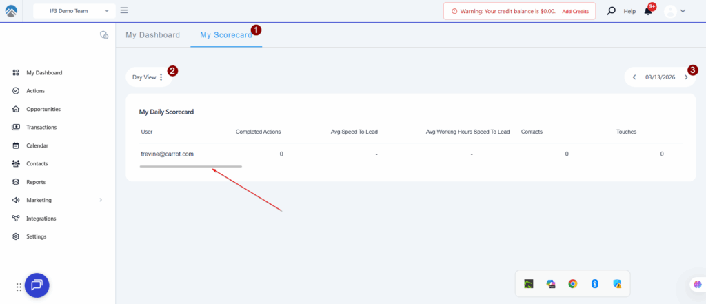 Today’s Metrics shows you your current KPIs for the day. This will reset daily at midnight so refer to My Scorecard if you want to see historical data.