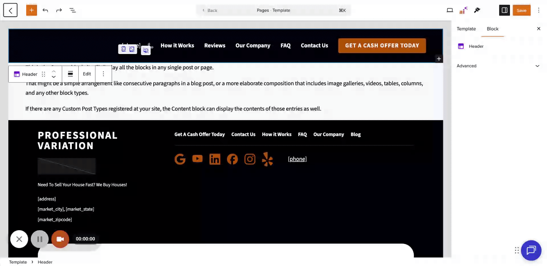 Editor Templates are the layout structures inside the Carrot Editor that define how pages, headers, footers, and reusable sections are built. These are separate from your Site Template and give you design flexibility without affecting your entire site’s built-in content strategy.