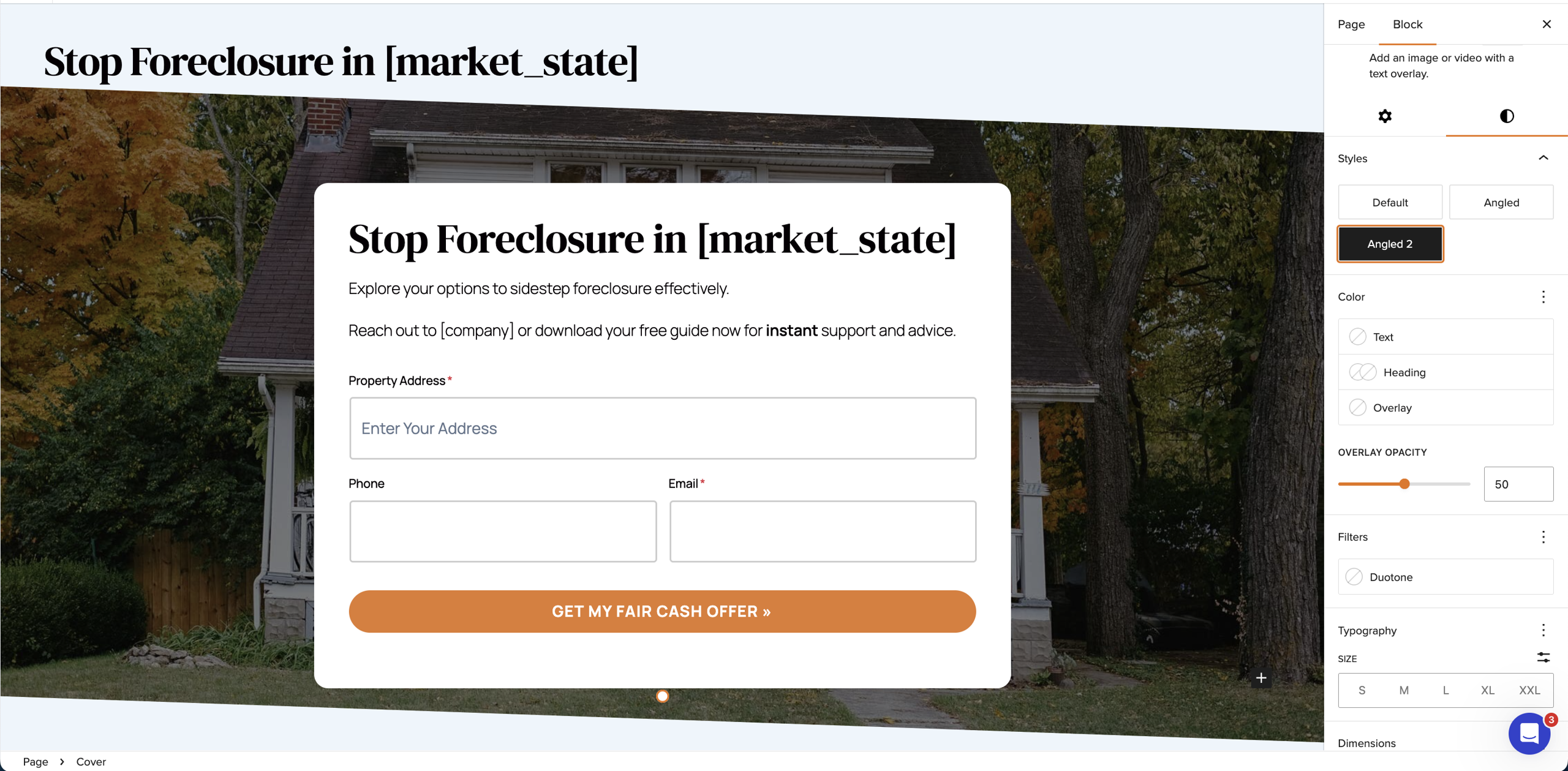 Exclusive to the Carrot Editor, any Cover Block supports angled visual layouts, giving you uphill or downhill angled shapes for a more dynamic look.