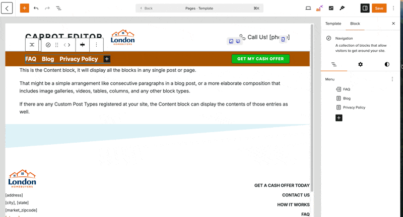 This tutorial shows how to edit your site header or footer using the Carrot Editor.