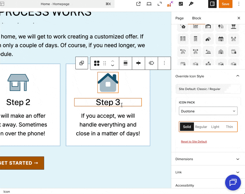 Compatibility note: This latest version of the Icon block is available on most Motivated Seller sites published after November 2025 and all other lead types published after February 6, 2026. Not sure which applies to your site? Check here