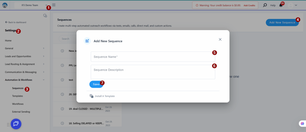 - Add steps to your Sequence (text, email, voicemail, etc)