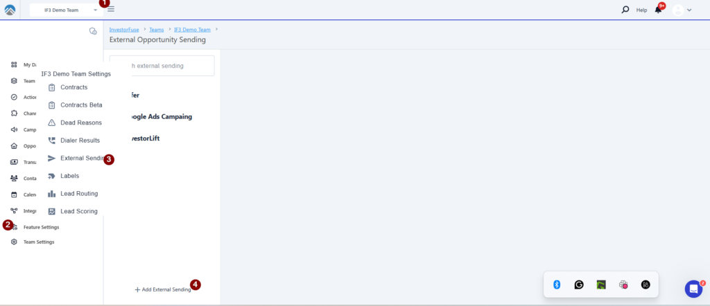 External Sending allows for the automatic or manual transfer of opportunity details to a third-party tool based on system actions. This feature is particularly useful for Dispositions, as it enables the sending of opportunity details to another tool when an opportunity is marked under contract inside of Carrot CRM or InvestorFuse, triggering the start of the Dispositions process if you are managing them on a separate platform. This is just one use case. This can also be used for marketing or acquisition teams depending on the trigger that you select, the capability is very flexible in that regard.